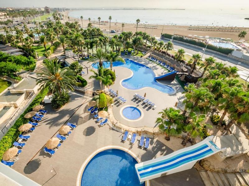 Het kindvriendelijke hotel, dat ligt aan een uitgestrekt zacht zandstrand net ten zuiden van de gezellige badplaats Cambrils, beschikt over een mooi klein waterpark met 3 buitenzwembaden plus verschillende glijbanen.
